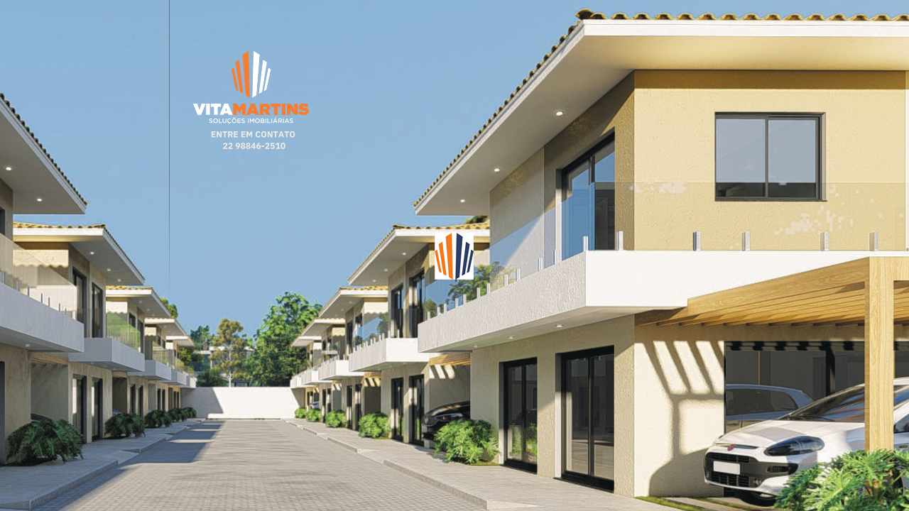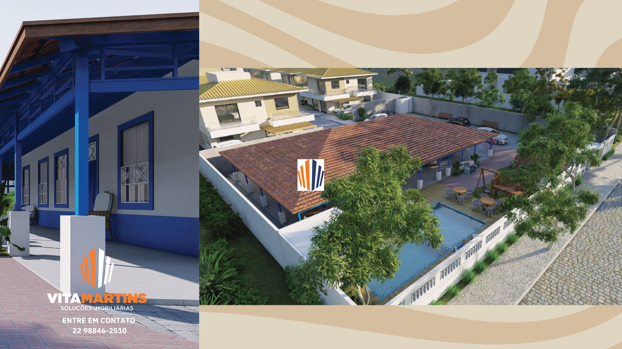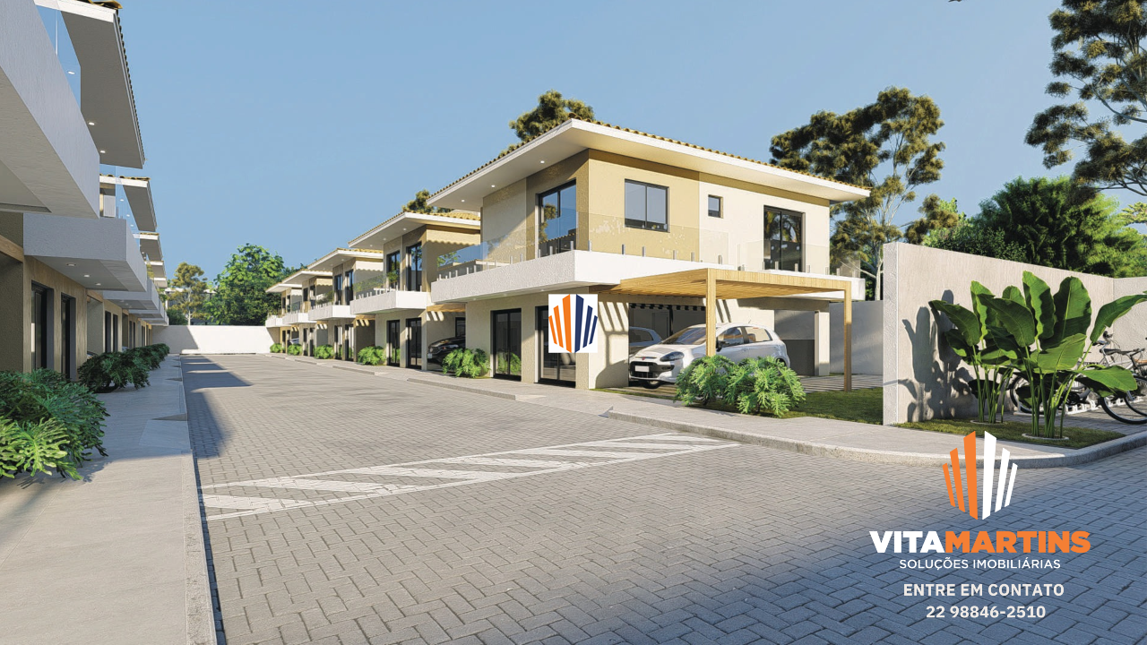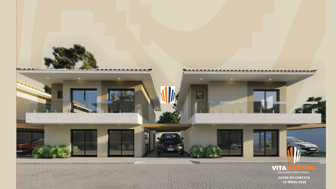 Casa em condomínio fechado de Alto Padrão em Cabo Frio/RJ, com vista para lagoa e aproximadamente 154,30m² de área construída e 208,46m² de terreno.
