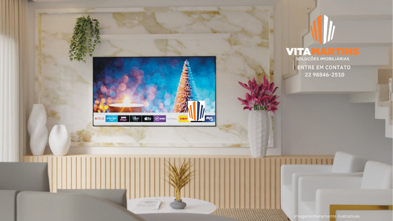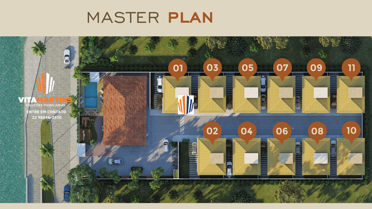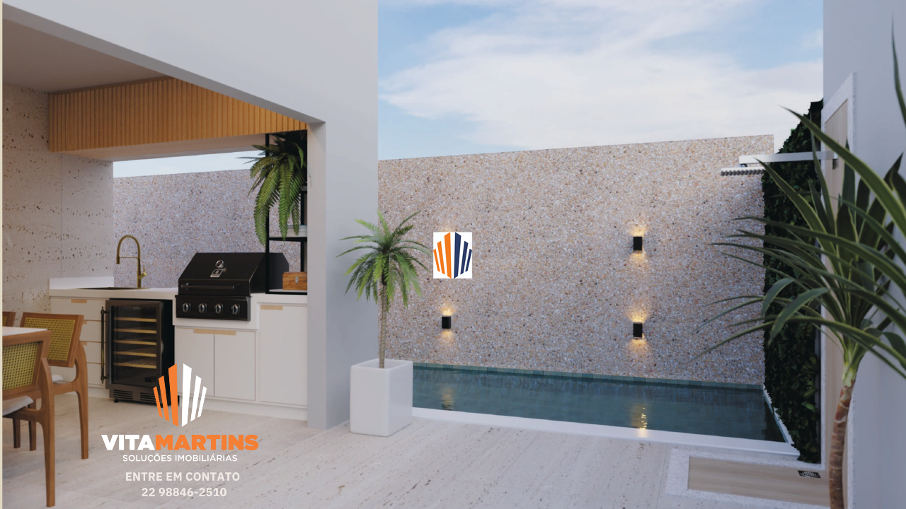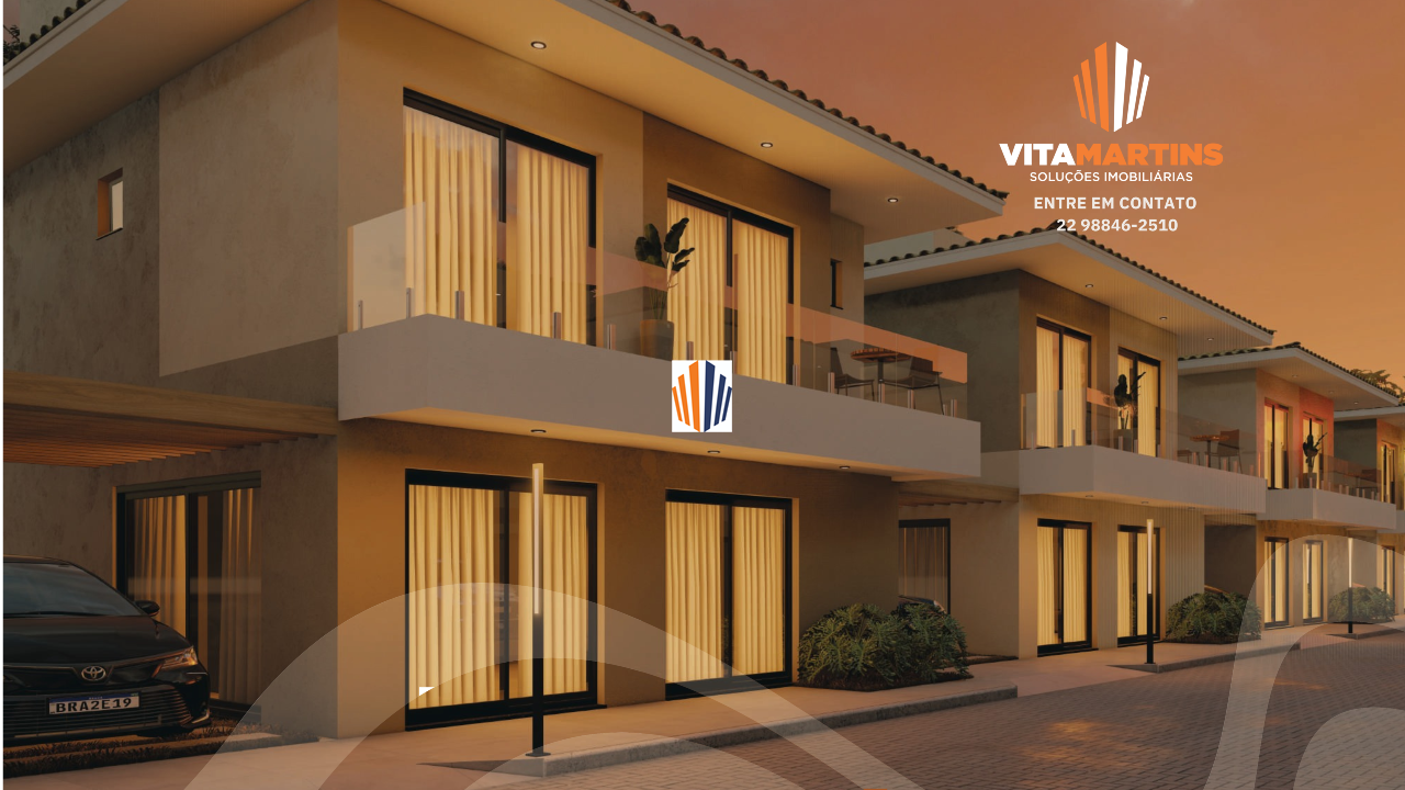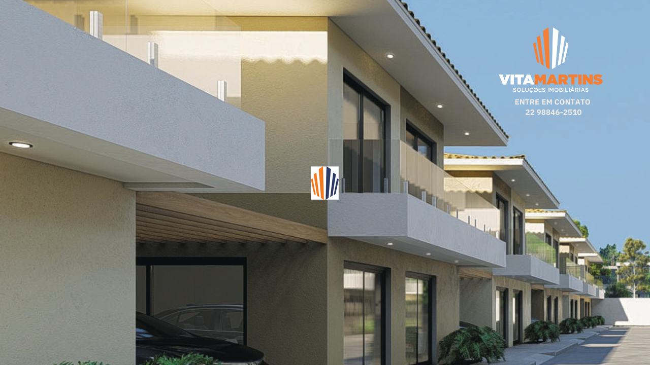 Casa em condomínio fechado de Alto Padrão em Cabo Frio/RJ, com vista para lagoa e aproximadamente 154,30m² de área construída e 208,46m² de terreno.