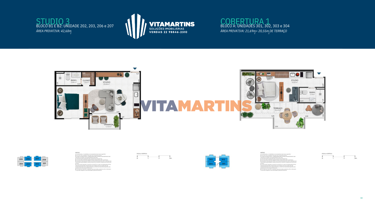 Studios "pé na areia" na Praia do Forte - Cabo Frio/RJ, com área de 42,24m².